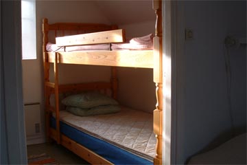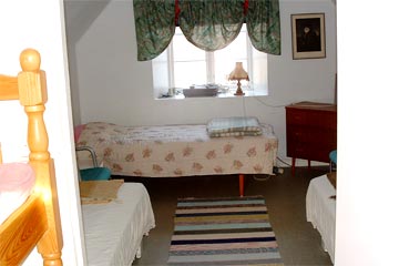 - 5 bäddar (3 enkelsängar med resårmadrass och 1 våningssäng)